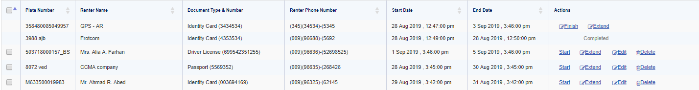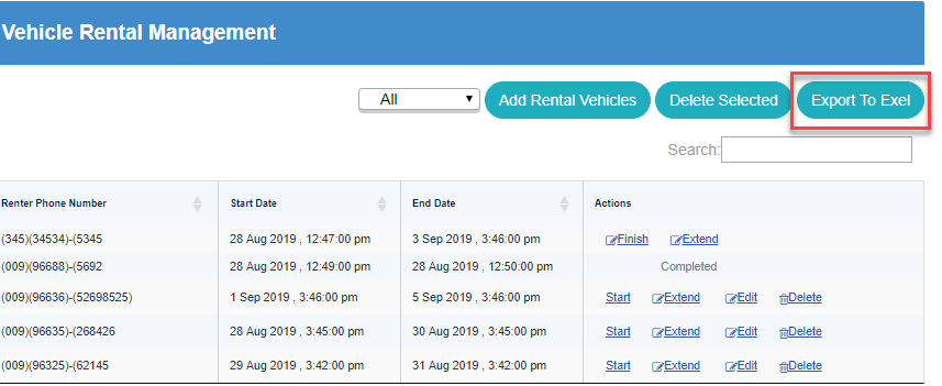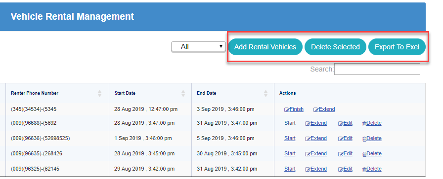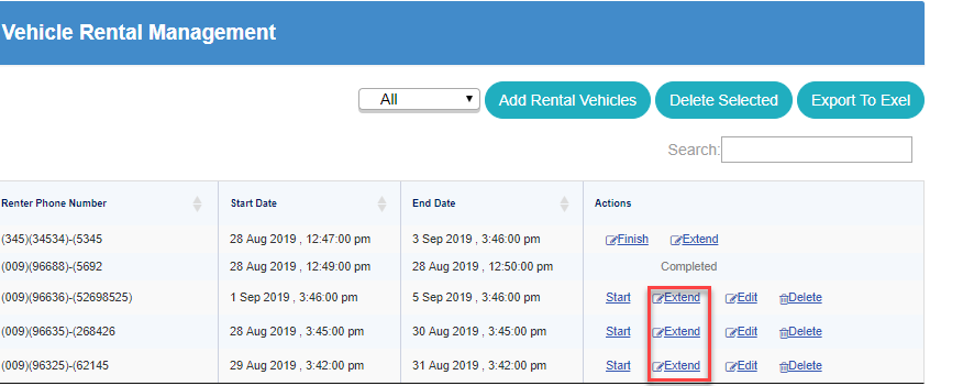 Extending rentals by clicking on Extend button in Actions column.