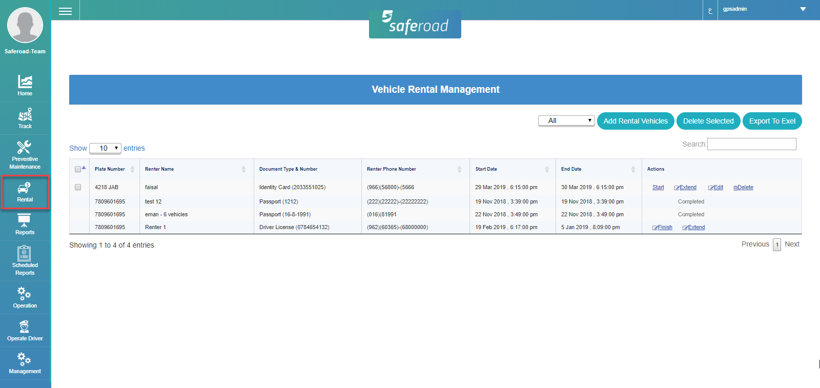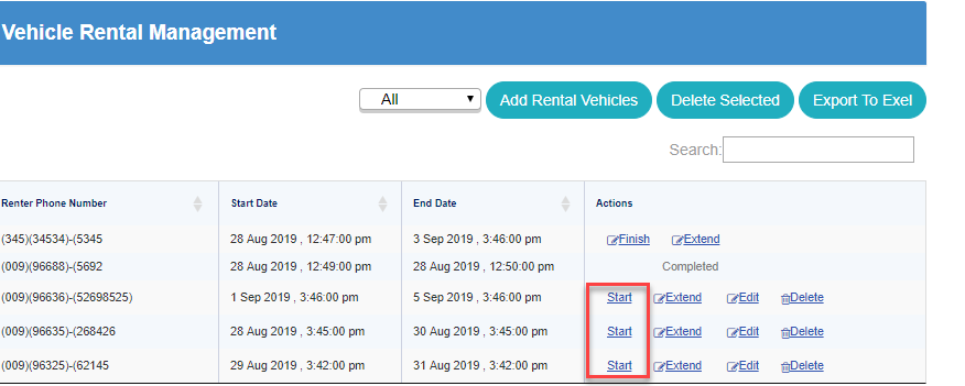If you click on Finish, you will be redirected to Vehicle Rental Management screen, and if click on Start Over button, you will be redirected to Add Rental Vehicles screen to add another rental.
