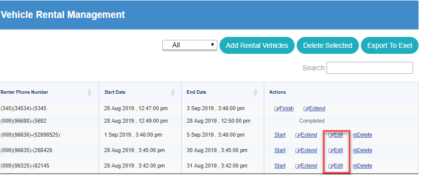 From Vehicle Rental Management screen, click on Edit button from Actions column.