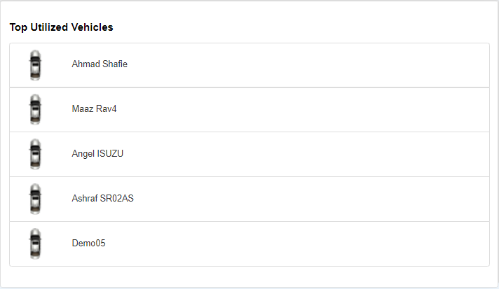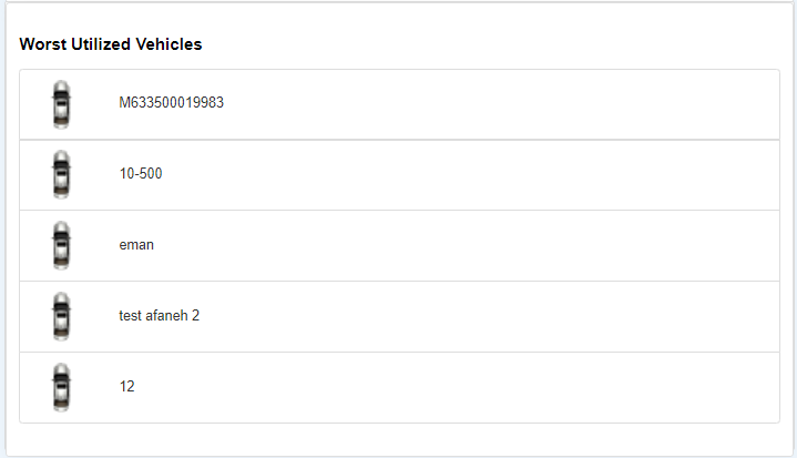 - Average Utilization for Mileage, working Hours and Parked Hours per day, week and month.