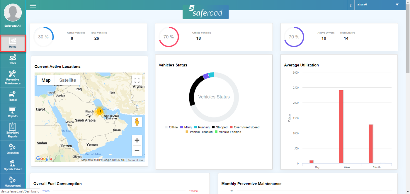 .Home screen is an overview for all the system status, it contains multiple visual figures and charts that summarize the information for multiple aspects in the system